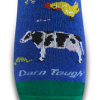 We take this sock’s purpose seriously, but wanted to have fun with it, too. With proceeds of the Barnyard going to the Vermont Foodbank, this lightweight crew features many of the local farm friends we share our land with. It’s a bright, colorful sock, and hopefully that’s a nod to a future much the same, where food insecurity is a lesson of the past. Still guaranteed for life and still made in Vermont, it also uses yarn from our inventory of overstock Merino Wool yarn – raw materials with no defined future. Will we do this again? Absolutely. Will it be this every day, casual sock? Most certainly not.